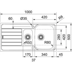 Franke Spark – Fregadero SKX 651-100, 1000×500 Mm, Acero Inoxidable 101.0504.085