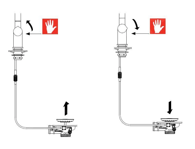 El grifo contiene un control especial giratorio Twist, que controla la apertura y el cierre del desagüe, por lo que el agua se drena sin tener que poner las manos en el fregadero.