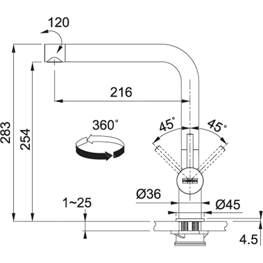 - orificio para grifo Ø 35 mm