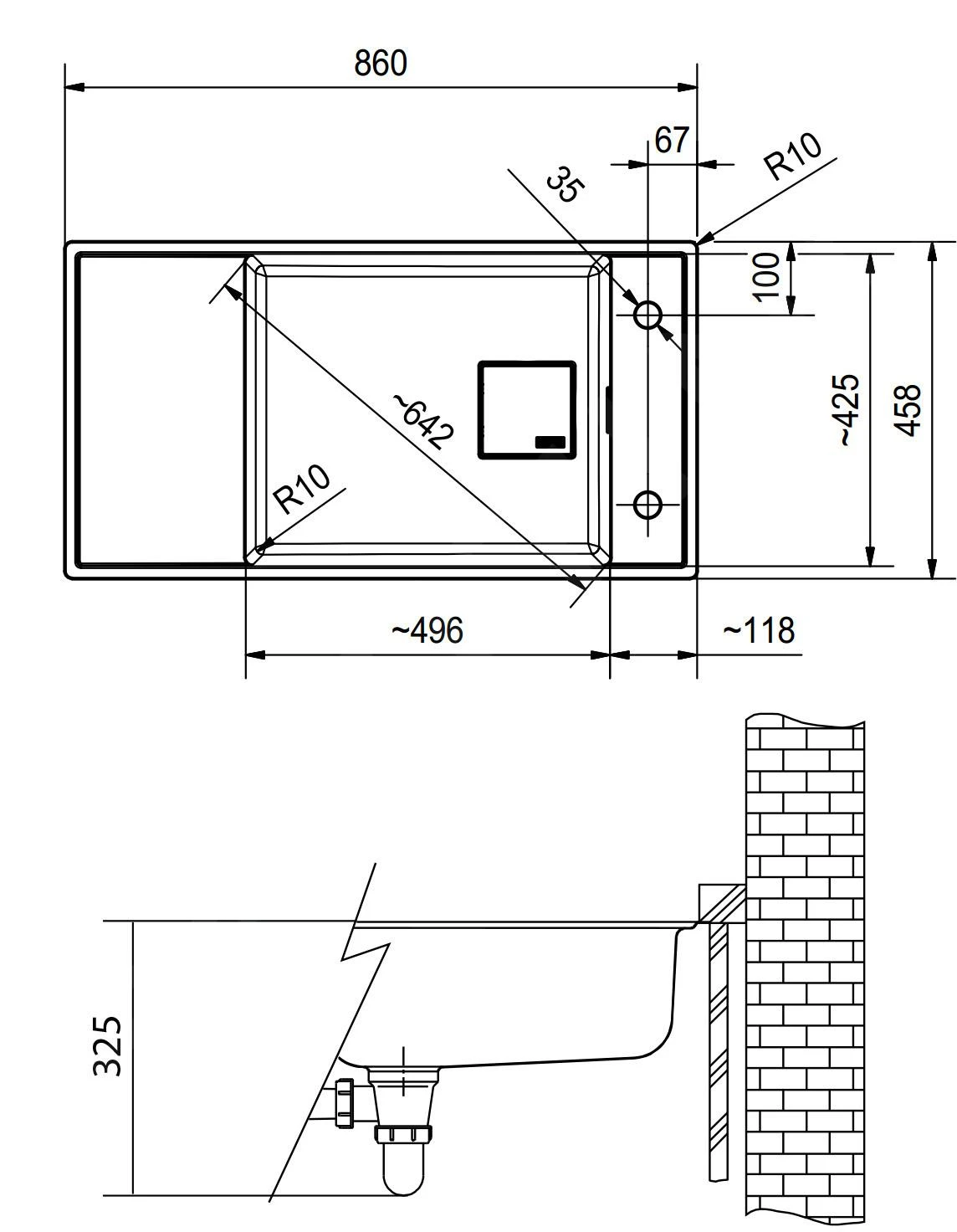 - fregadero 496 × 425 × 195 mm