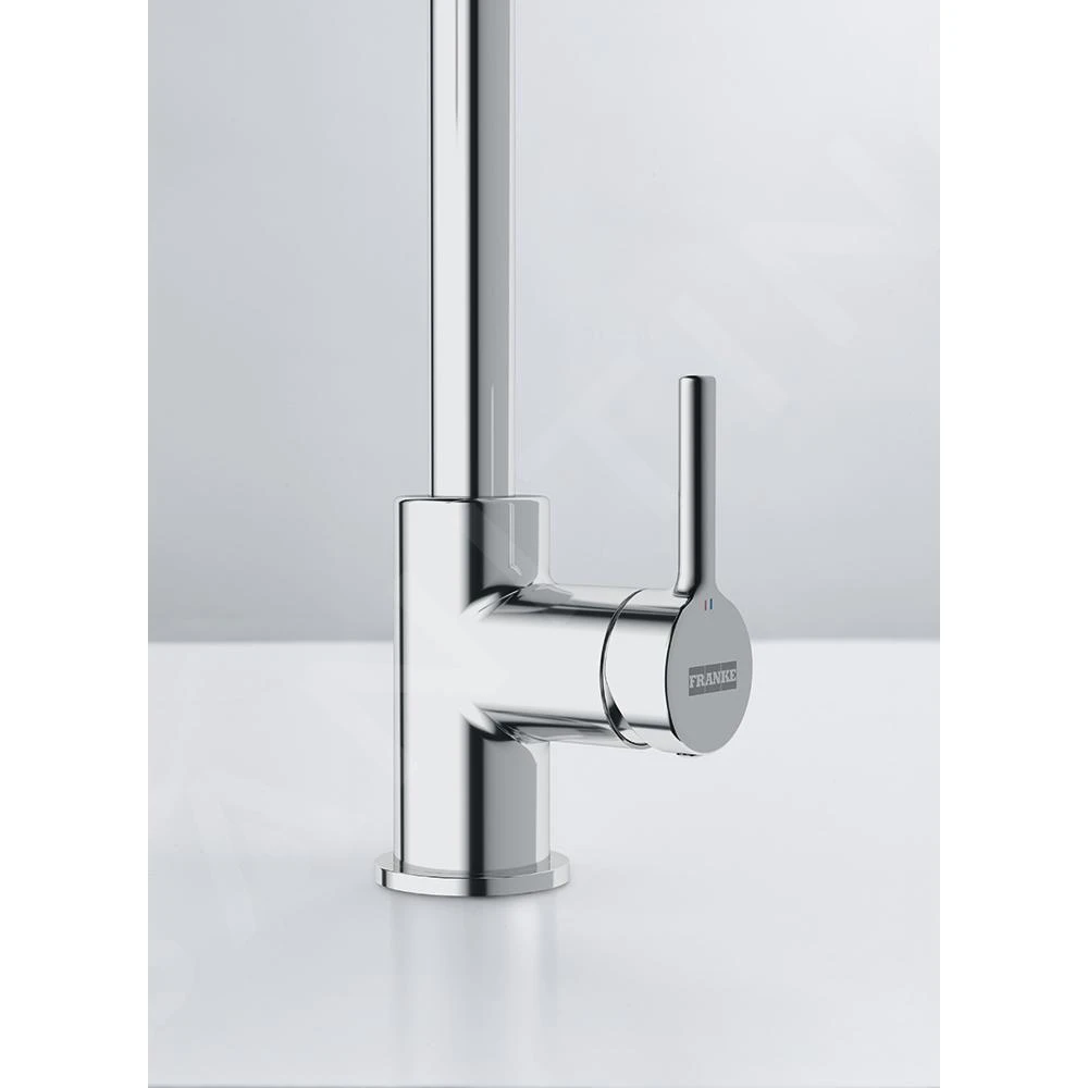 El grifo monomando de cocina Franke Lina funciona siempre de forma fiable, con un caudal de agua de 14 l/min a una presión de 3 bar. Este grifo no tiene ducha.
