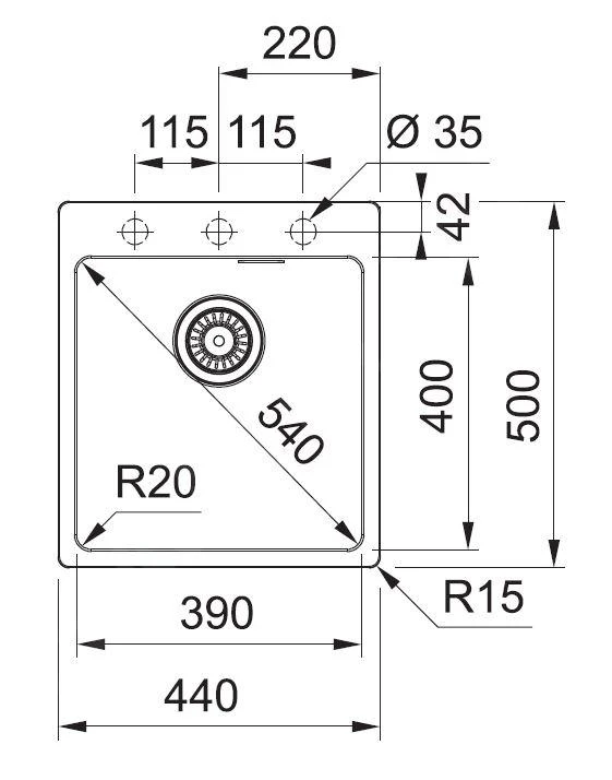 - fregadero 390 x 400 x 200 mm