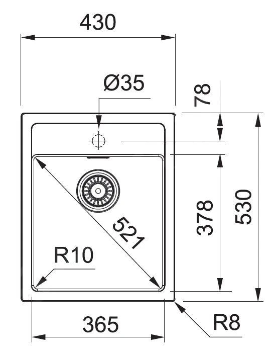 - dimensiones del fregadero 365 x 378 x 200 mm