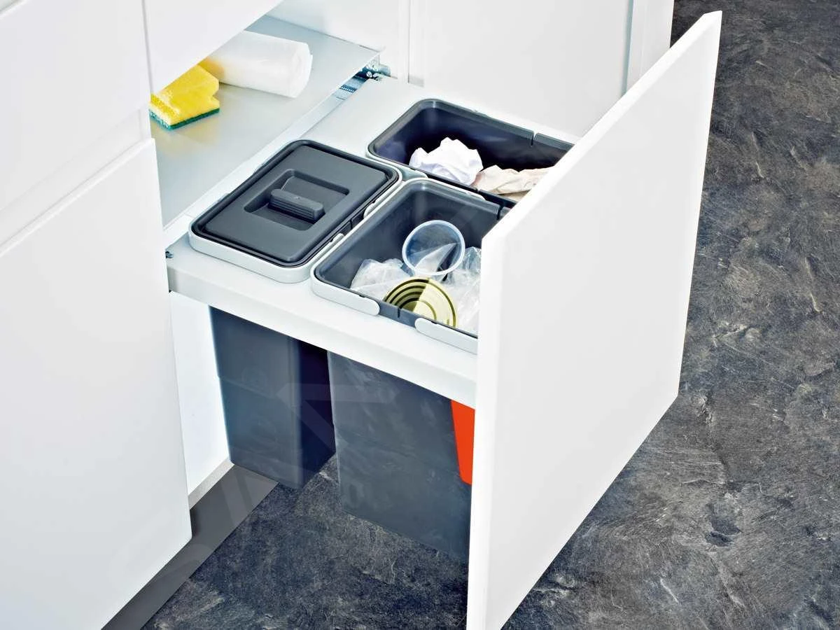 Si otros elementos de la cocina son objeto de atención, no ocurre lo mismo con los cubos de basura. El Sorter Garbo 50-3 opta por un diseño algo más discreto, pero lo fundamental es su excelente funcionamiento.