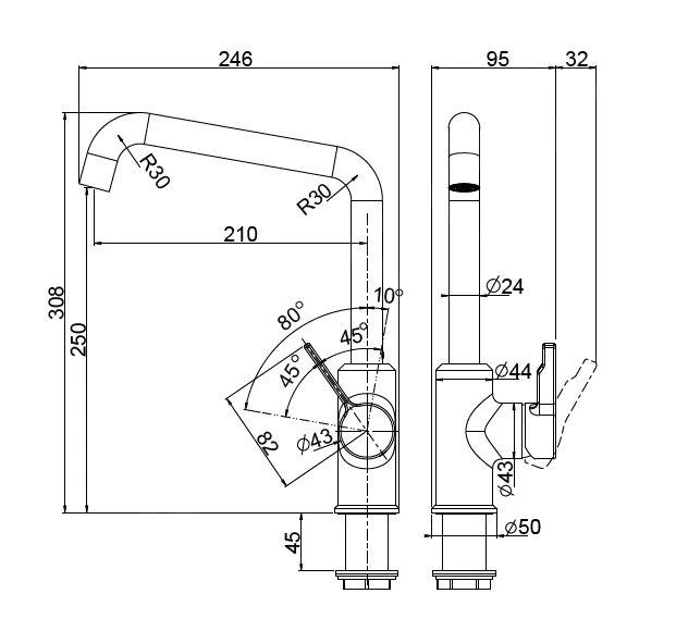 - altura de grifo 308 mm